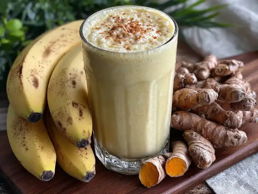 A quick and easy smoothie blending ripe bananas, turmeric, and almond milk for a creamy, anti-inflammatory boost that’s perfect for mornings or afternoons.