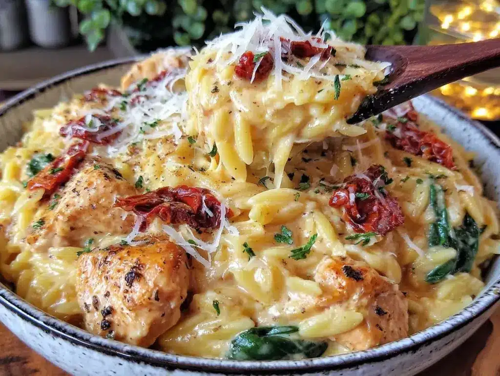 A comforting and creamy slow cooker recipe featuring tender chicken, sun-dried tomatoes, spinach, and orzo pasta in a luscious Tuscan sauce. Perfect for an easy, set-it-and-forget-it dinner that pleases the whole family.