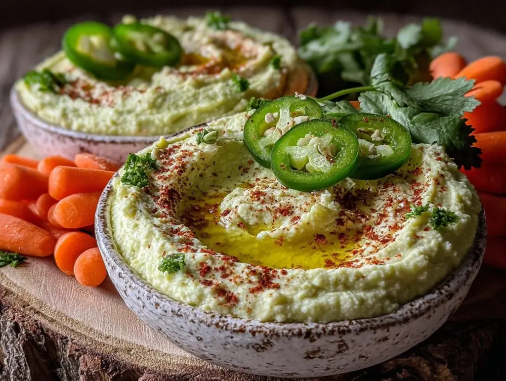 A quick and easy creamy spicy jalapeño hummus that combines smoky heat with velvety smooth chickpeas, perfect for snacks, parties, and a flavorful dip.