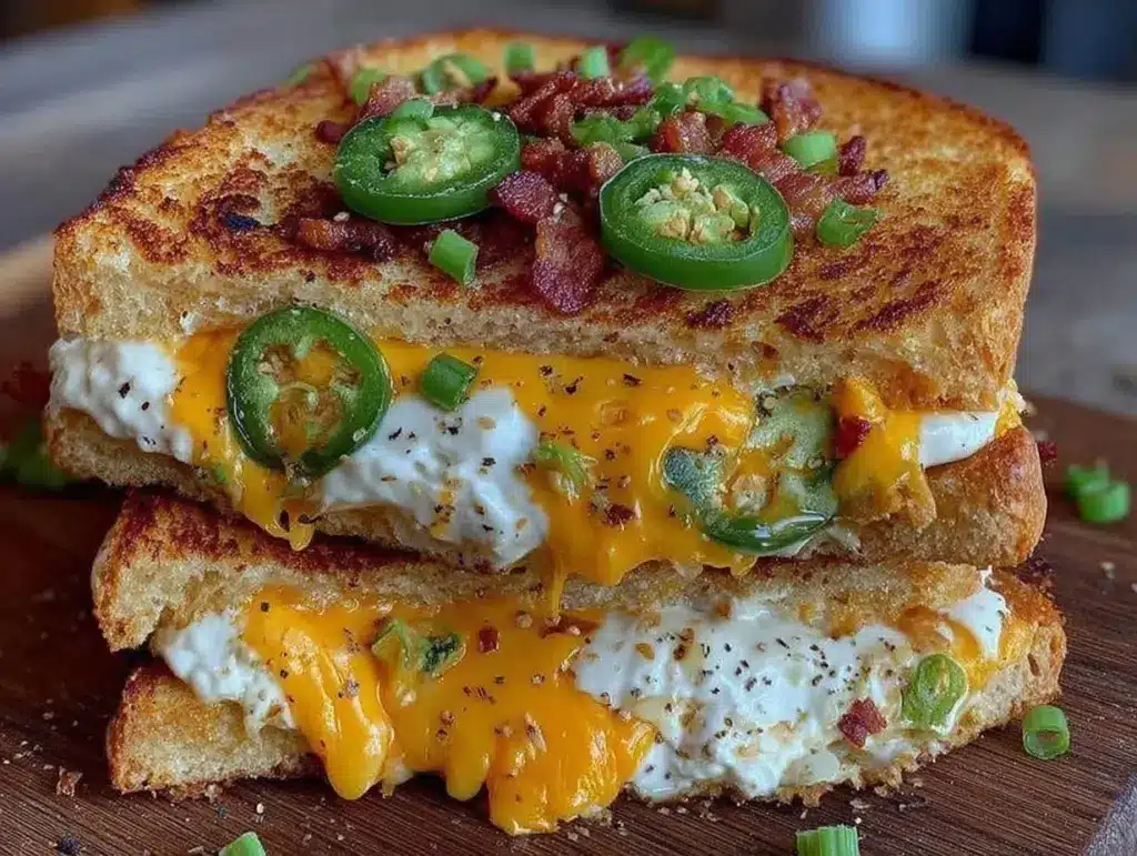 A creamy, spicy grilled cheese sandwich featuring roasted jalapenos, sharp cheddar, and cream cheese for a melty, flavorful twist on a classic comfort food.