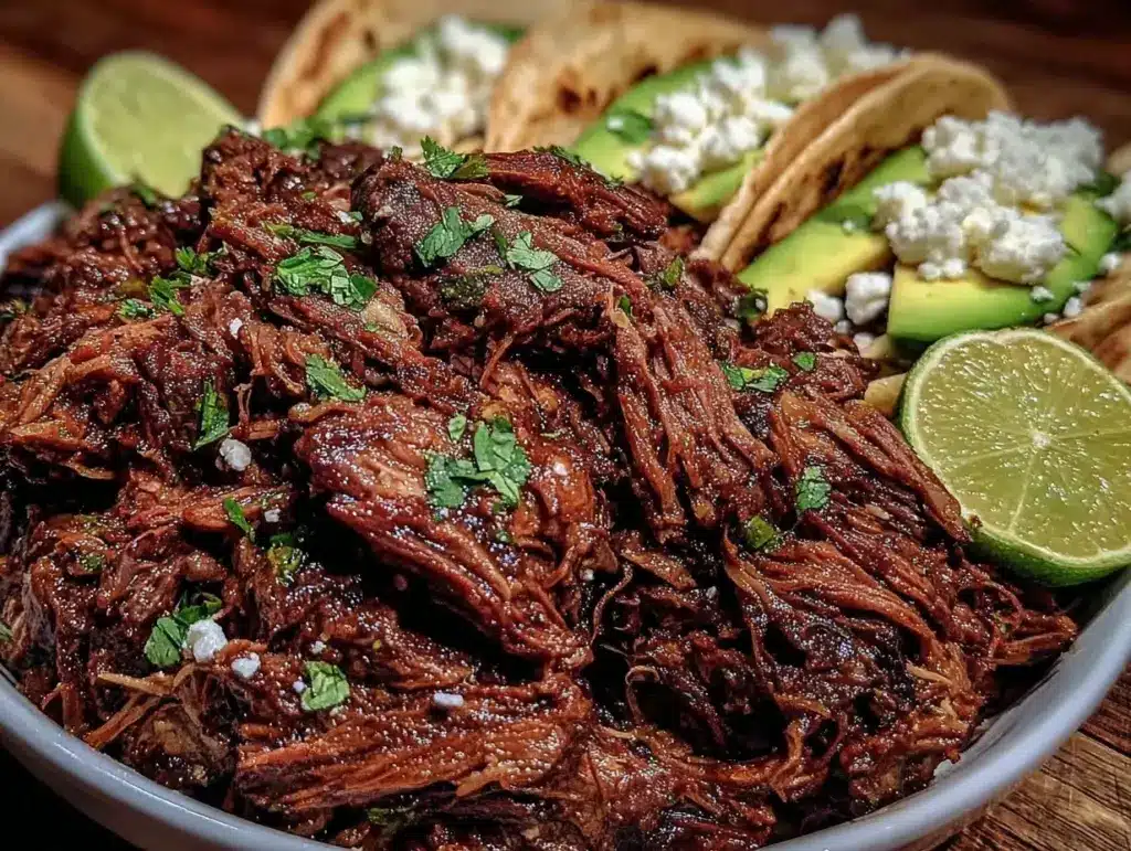 Store leftover shredded beef in an airtight container in the refrigerator for up to 4 days. It freezes well too — just portion it out and freeze for up to 3 months. To reheat, warm gently on the stovetop or microwave with a splash of broth to keep it moist. The flavors actually deepen overnight, making next-day sandwiches or tacos even better.
